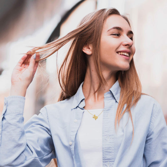 Texas 18K Gold Plated Necklace, Yellow Gold Color, Anchor Chain, Size 16 inch + 2 inch Extender, Pendant